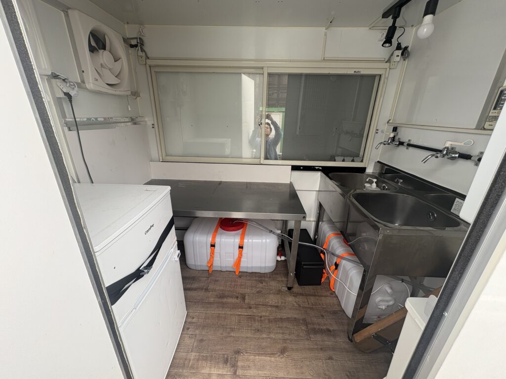 ボックス:2槽シンク、80L給水排水タンク、クーラー、換気扇、